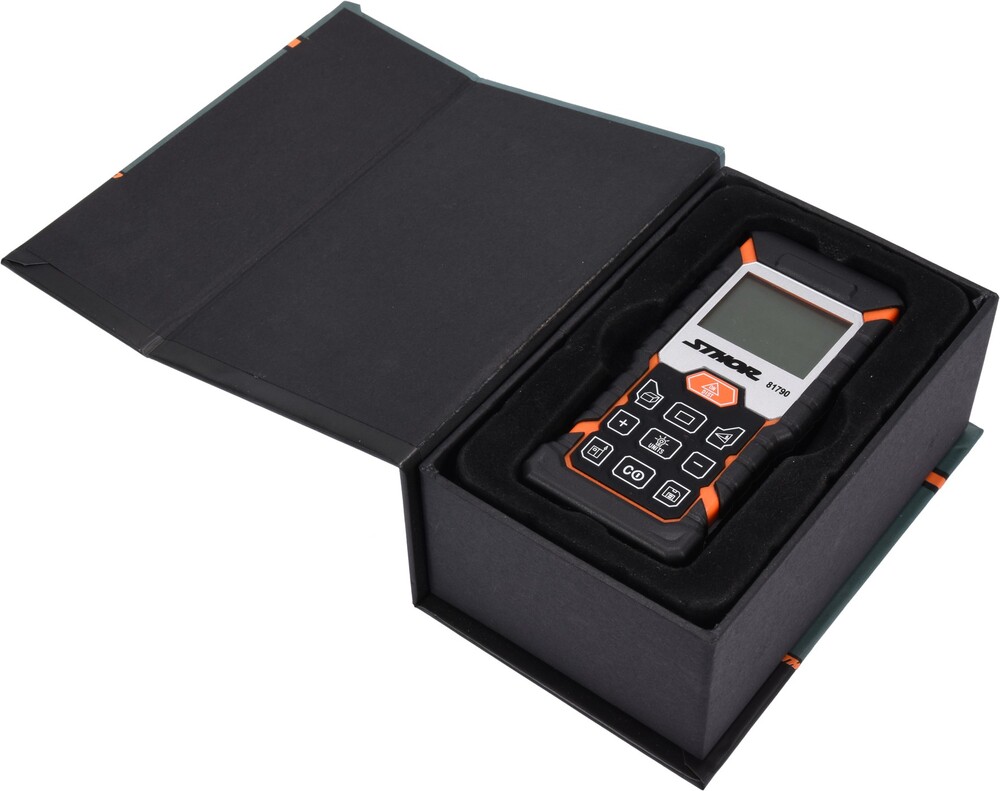 Dodatkowo dalmierz wyposażony jest w pamięć 20 ostatnich pomiarów. W przypadku funkcji złożonych (np. przy obliczaniu objętości) oznacza to zapamiętanie wszystkich 3 pomiarów składowych, oraz wyniku, w przeciwieństwie do produktów konkurencji zapamiętujących wyłącznie wynik. W efekcie daje nam to aż 80 pozycji przechowywanych w pamięci urządzenia. Dzięki temu pomiary można wykonać szybko i komfortowo, a wyniki zapisać w dogodniejszych warunkach.