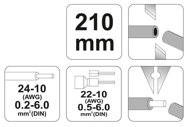 - mechanizm szybkiego i automatycznego ściągania izolacji zarówno z przewodów płaskich jak i okrągłych w zakresie od 0,2 mm2 do 6,0 mm2
