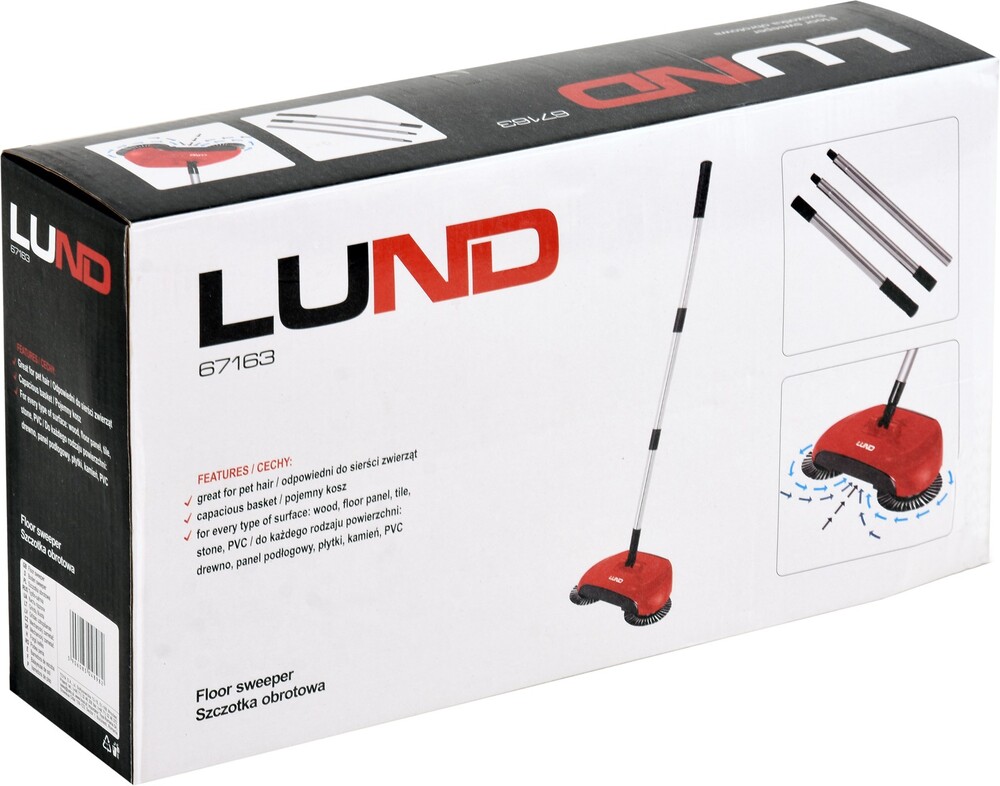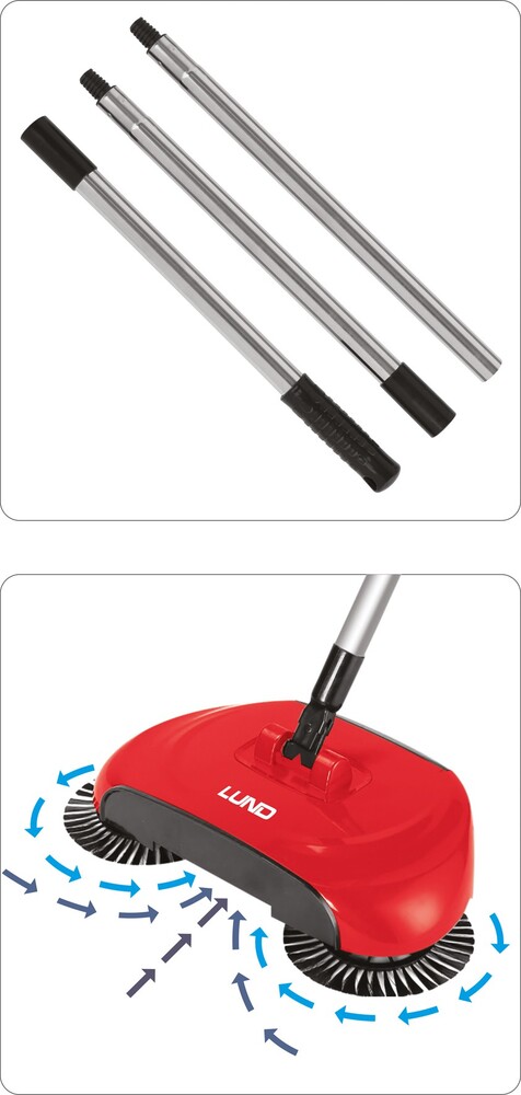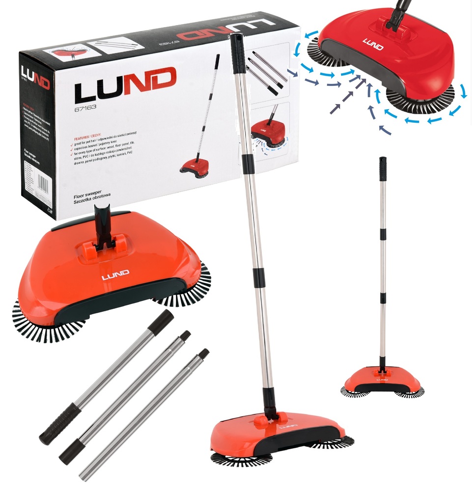 Praktyczna obrotowa szczotka LUND doskonale zastąpi klasyczną szczotkę i szufelkę lub głośny odkurzacz. Ruch obrotowy szczotek sprawia, że wszystkie zanieczyszczenia trafiają bezpośrednio do zbiornika na kurz.