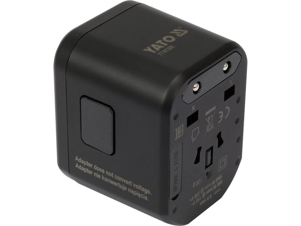 UNIWERSALNY ADAPTER PODRÓŻNY PRZEJŚCIÓWKA Z SZYBKĄ ŁADOWARKĄ USB WTYCZKA AUS USA UK CHINA EU PL 110-240V YATO YT-81300
