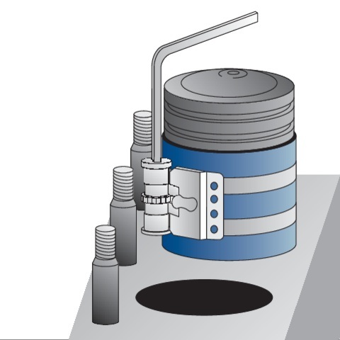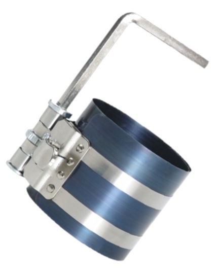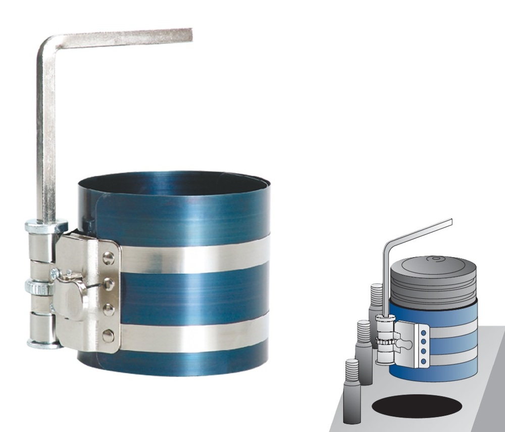 Zaciskacz do pierścieni tłokowych do bezpiecznego montażu tłoków w tulejach cylindrowych. Zakres średnicy od 50 mm do 125mm. Wysokość 75 mm.