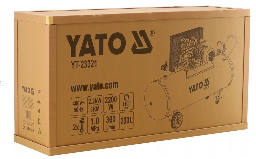 KOMPRESOR OLEJOWY SPRĘŻARKA POWIETRZA 200L 400V 3KM 360L/MIN 10BAR YATO YT-23321