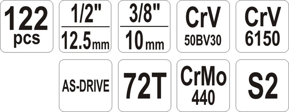 Profesjonalny 79-elementowy zestaw narzędziowy, który został opracowany pod kątem potrzeb wyspecjalizowanych serwisów samochodowych i mechanicznych. Klucze nasadowe, jak i napęd nasadek, zostały wykonane z wytrzymałej, narzędziowej stali chromowo-wanadowej CrV.