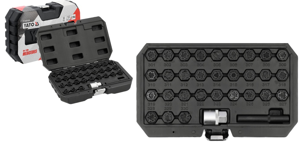 ZESTAW NASADEK NASADKI DO ŚRUB ZABEZPIECZAJĄCYCH MERCEDES 32el. YATO YT-060390