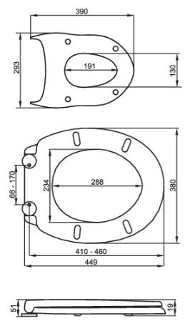 - dzięki mimośrodowej regulacji mocowania łatwo ją dopasować do większości misek toaletowych, zarówno kompaktowych, jak i wiszących