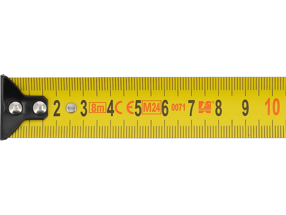 Miara zwijana z bardzo szeroką 25-milimetrową stalową taśmą o długości 8 metrów. Wykonana w II klasie dokładności pomiarowej. Wyposażona w krótką smycz, którą można wygodnie przełożyć wokół nadgarstka lub odwiesić na niej miarę.
