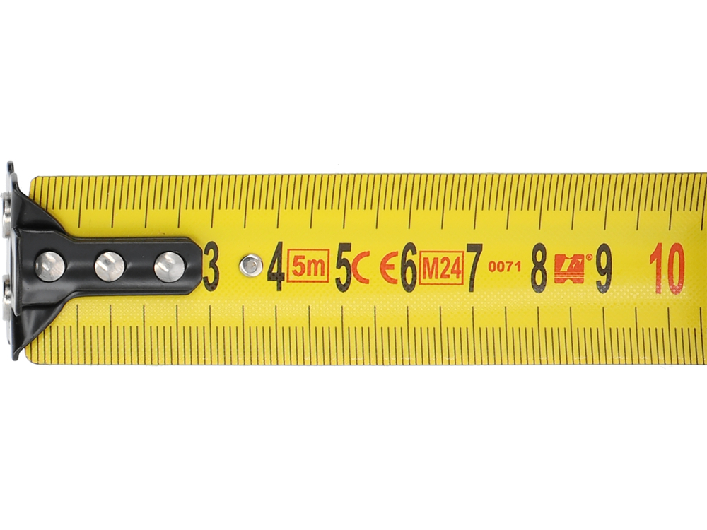 Miara zwijana z wyjątkowo szeroką 32-milimetrową stalową taśmą o długości 5 metrów. Wykonana w II klasie dokładności pomiarowej. Wyposażona w krótką smycz, którą można wygodnie przełożyć wokół nadgarstka lub odwiesić na niej miarę.