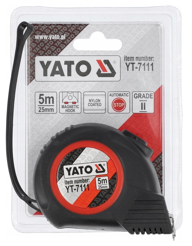 MIARA ZWIJANA TAŚMA MIERNICZA MIARKA METRÓWKA Z BLOKADĄ MAGNES 5m 25mm YATO YT-7111