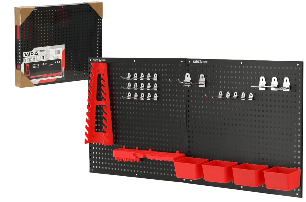 METALOWA TABLICA NARZĘDZIOWA Z POJEMNIKAMI I UCHWYTAMI 34el. YATO YT-08980