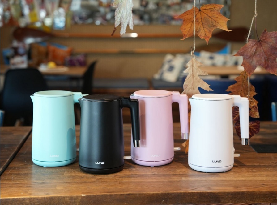 Czajnik LUND dostępny jest w czterech kolorach: białym, czarnym, różowym i turkusowym. Jego prosta forma, o lekko zaoblonej linii, matowa powłoka i jednolity kolor sprawiają, że łatwo wkomponować go w klasyczne lub nowoczesne wnętrza.