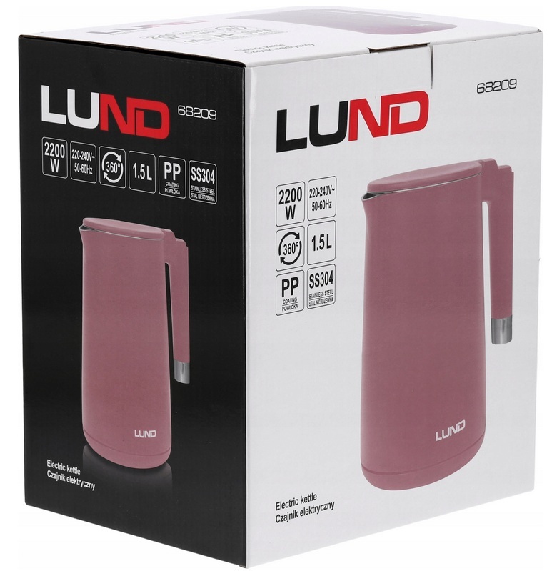 CZAJNIK ELEKTRYCZNY STAL NIERDZEWNA 1,5L 2200W COOL TOUCH RÓŻOWY LUND 68209
