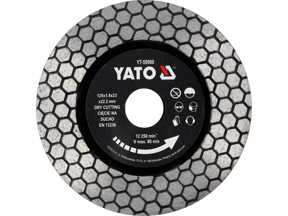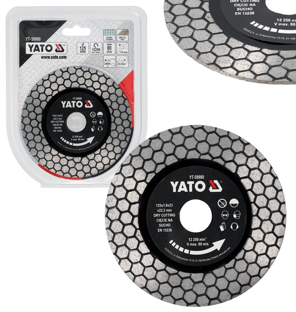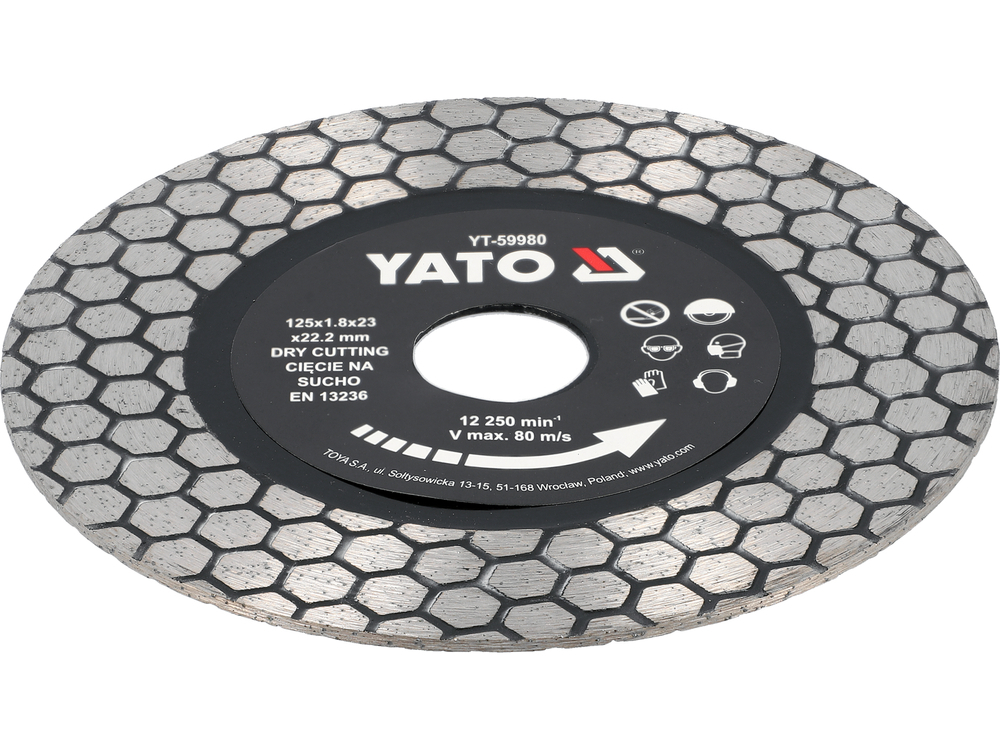 TARCZA DIAMENTOWA DO SZLIFOWANIA I CIĘCIA GRESU CERAMIKI GLAZURY PORCELANY 125mm 22,2mm YATO YT-59980