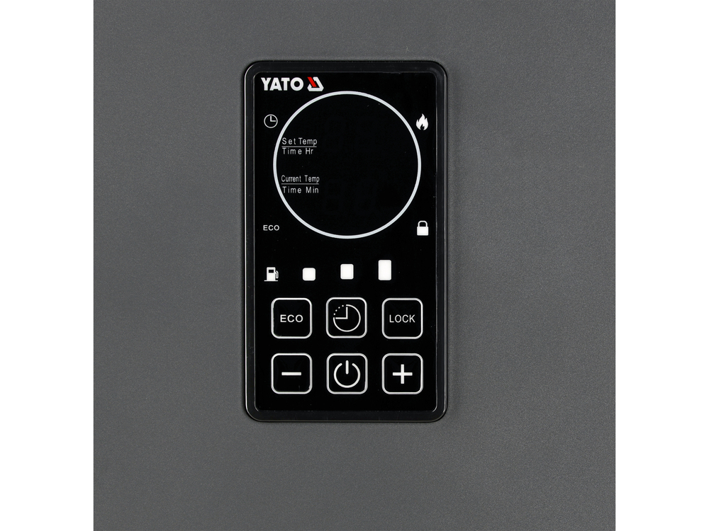Ręczny termostat oraz timer umożliwiają regulowanie temperatury i czasu pracy w zależności od bieżących potrzeb. Czytelny cyfrowy wyświetlacz wskazuje precyzyjnie parametry pracy. Metalowa obudowa malowana proszkowo jest odporna na uszkodzenia, zarysowania i korozję.