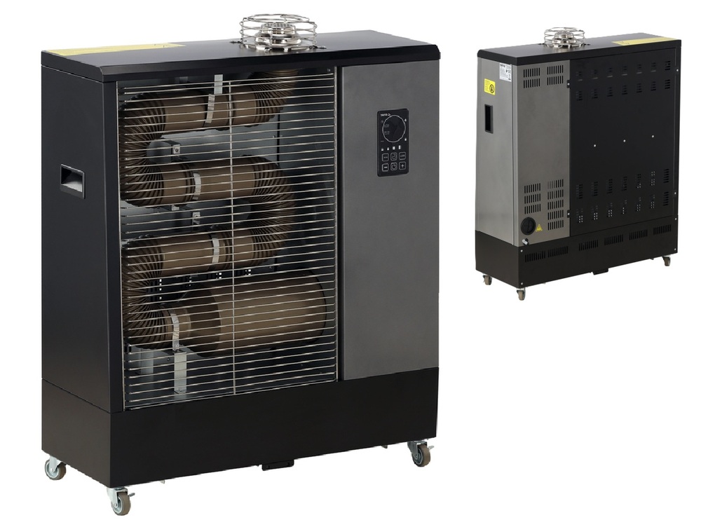 Przenośna nagrzewnica olejowa na podczerwień zaprojektowana do efektywnego ogrzewania pomieszczeń użyteczności publicznej. Pomaga zapewnić szybki komfort cieplny w warsztatach, halach, magazynach oraz skuteczne osuszanie powierzchni ścian podczas prac remontowo-budowlanych.