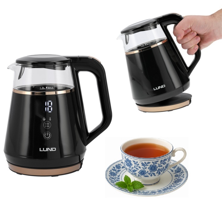 ➡️ CZAJNIK ELEKTRYCZNY LUND 1100W 1L CZARNY Z REGULACJĄ TEMPERATURY 40-100°C LUND 68216