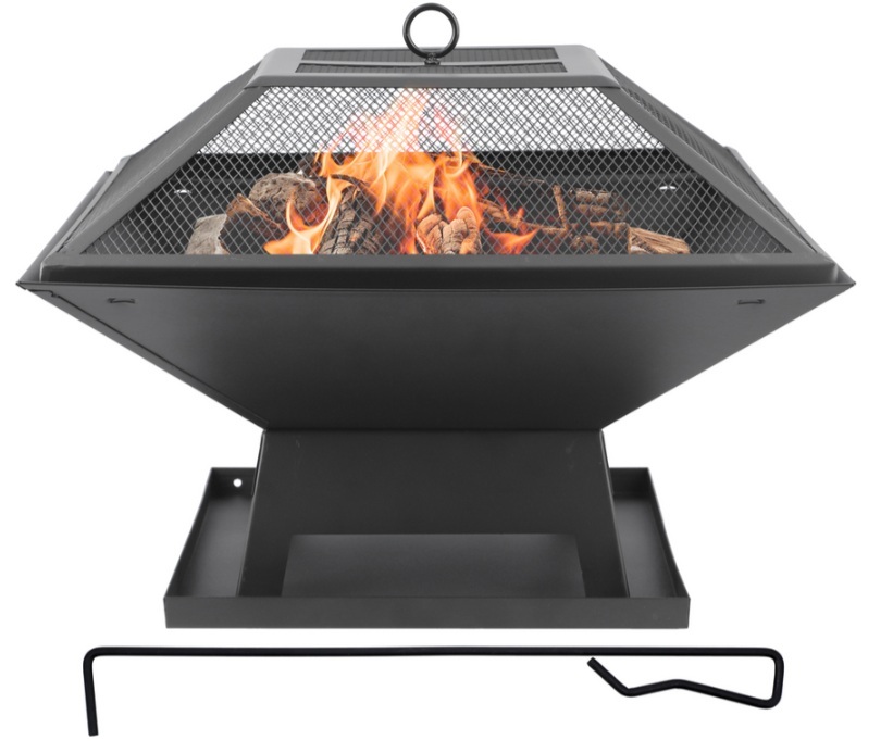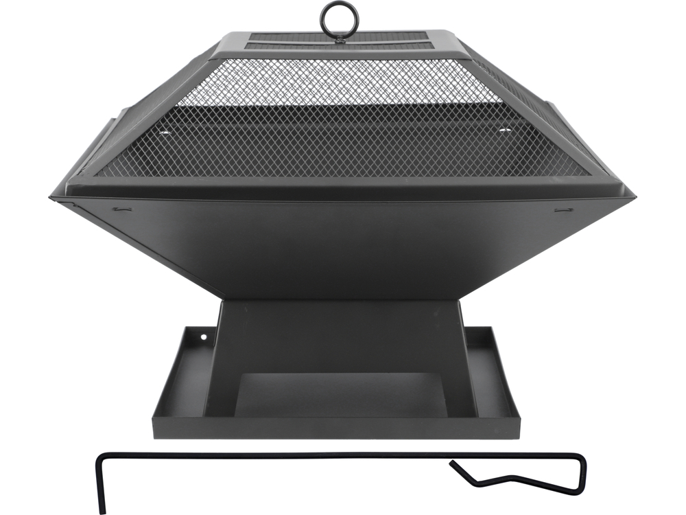Pokrywa ogranicza przedostawanie się iskier z ogniska na zewnątrz, a dołączony stalowy pogrzebacz ułatwia podnoszenie pokrywy oraz dbanie o żar i ułożenie drewna.