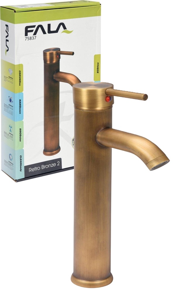 BATERIA UMYWALKOWA STOJĄCA WYSOKA KRAN RETRO BRONZE 2 ANTYCZNE ZŁOTO MOSIĄDZ FALA 75837