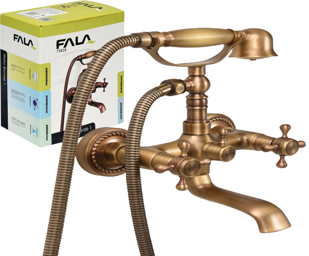 BATERIA WANNOWA ŚCIENNA KRAN RETRO BRONZE 1 ANTYCZNE ZŁOTO MOSIĄDZ FALA 75828