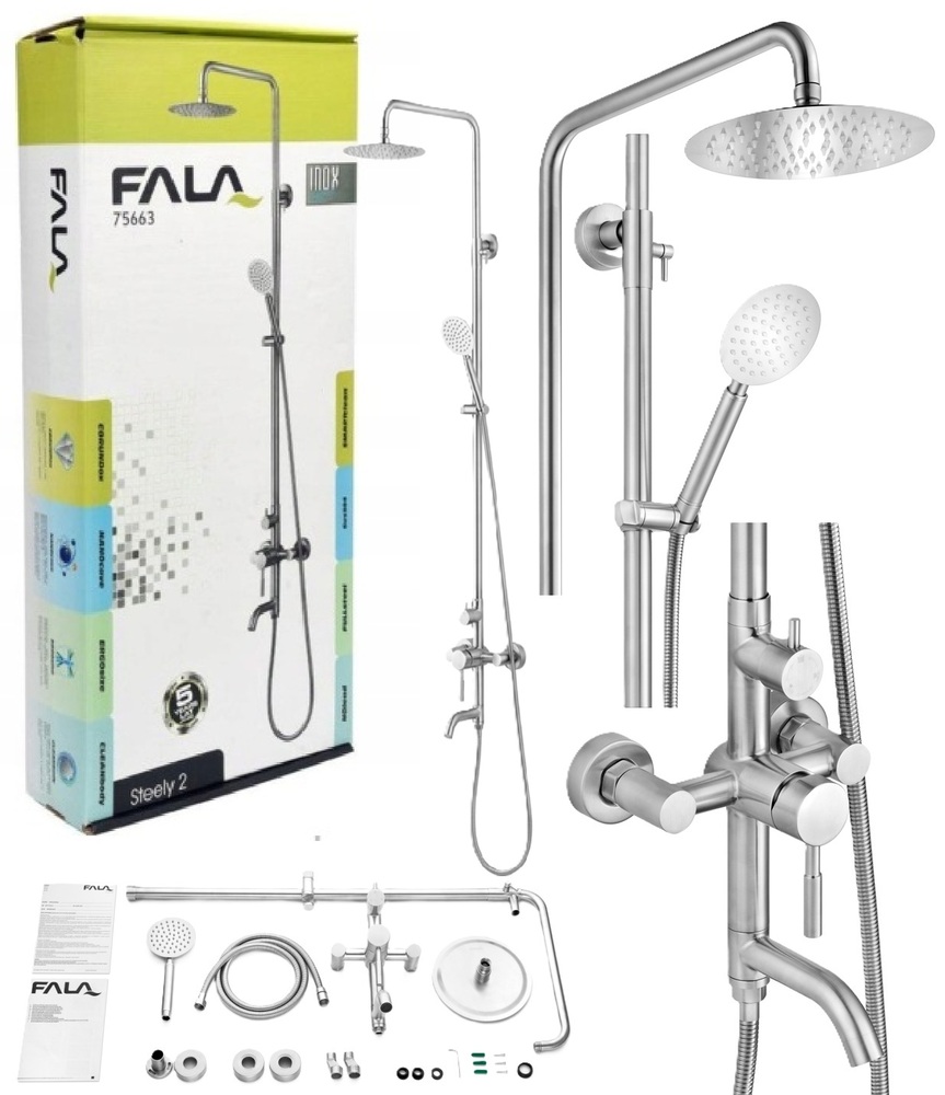 KOLUMNA PRYSZNICOWA DESZCZOWNICA Z BATERIĄ STEELY 2 FALA 75663