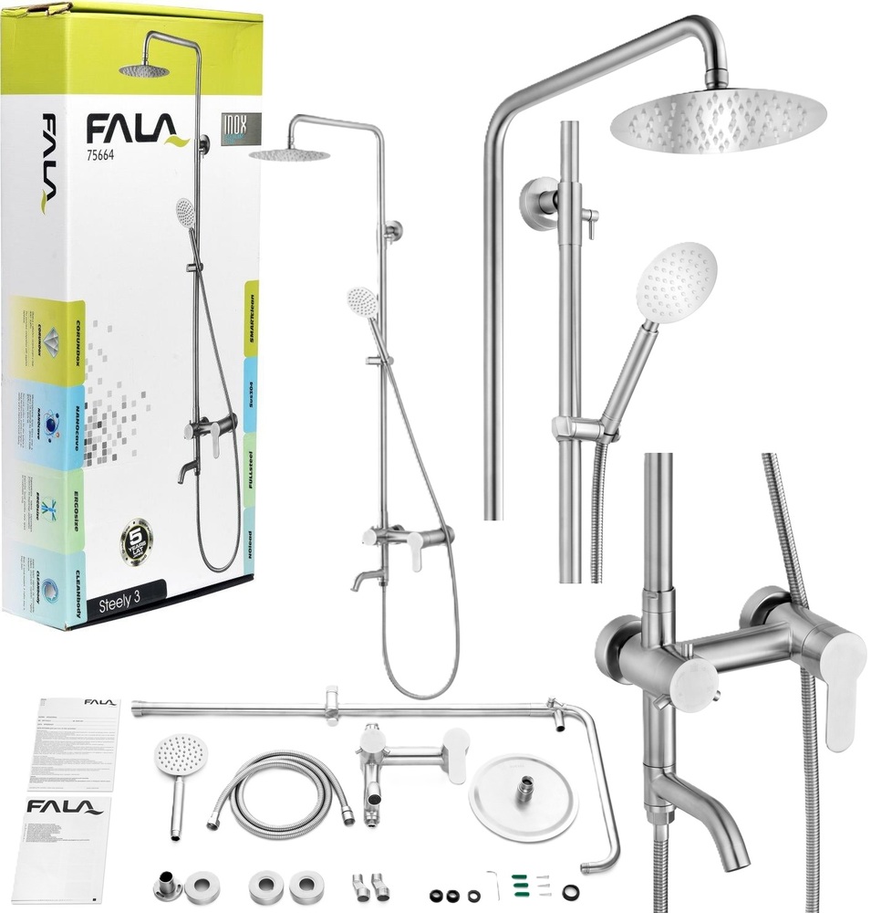 KOLUMNA PRYSZNICOWA DESZCZOWNICA Z BATERIĄ STEELY 3 FALA 75664