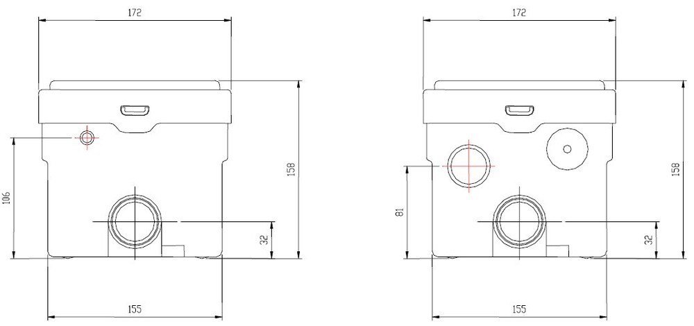 • możliwość podłączenia umywalki, wanny, prysznica lub bidetu z obu stron pompy.