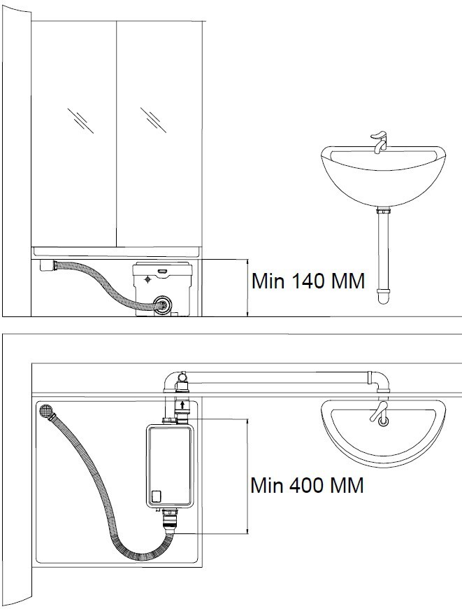 • niewielkie wymiary sprawiają, że pompa zmieści się pod wanną, w małej szafce pod umywalką, a nawet w zabudowie wysokiego brodzika prysznicowego