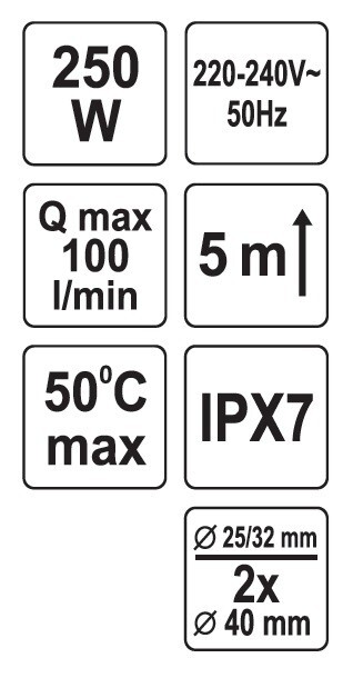 Produkt jest przeznaczony tylko do przepompowywania ścieków niezawierających fekaliów. Zabronione jest wrzucanie artykułów higienicznych do odpływu urządzeń podłączonych do pompy, takich jak: ręczniki papierowe, podpaski, tampony oraz podobne produkty.