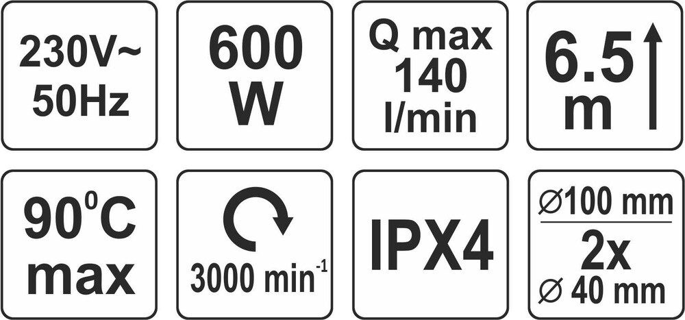 Średnica przyłącza wody [mm]: 40 x2, 100 x1
