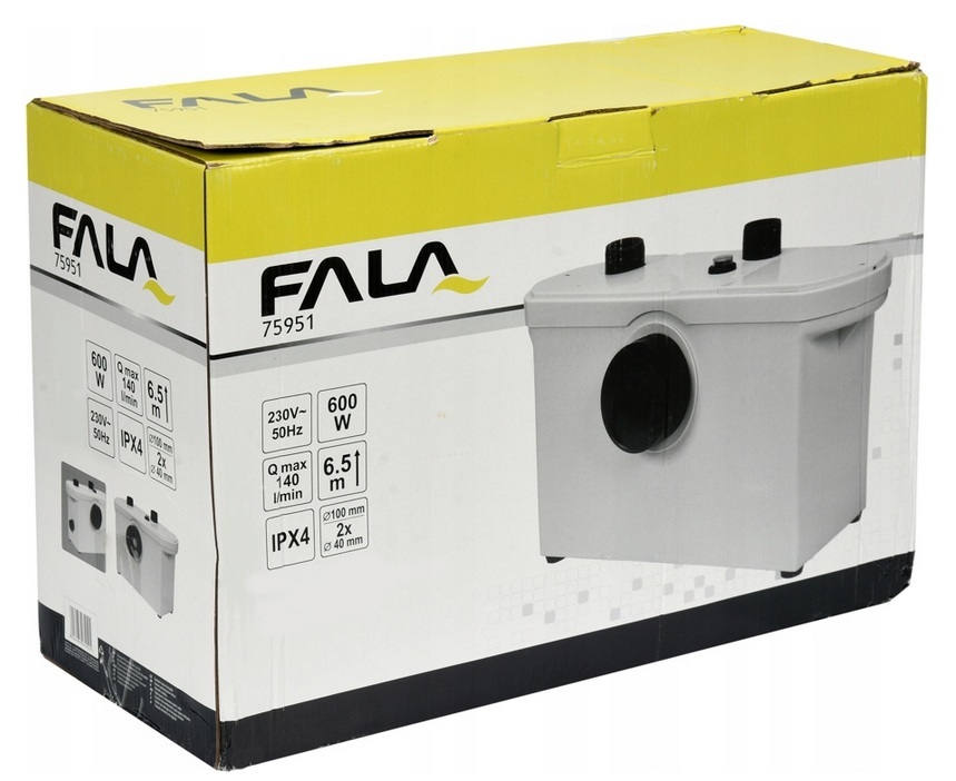 POMPA SANITARNA DO WC ROZDRABNIACZ MIELNIK MIKSER MŁYNEK PRZEPOMPOWNIA 600W 140 l/min FALA 75951