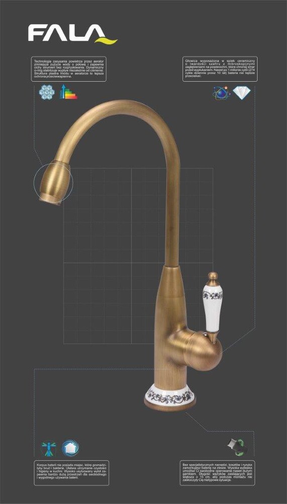 BATERIA KUCHENNA ZLEWOZMYWAKOWA STOJĄCA RETRO BRONZE 2 ANTYCZNE ZŁOTO MOSIĄDZ FALA 75831