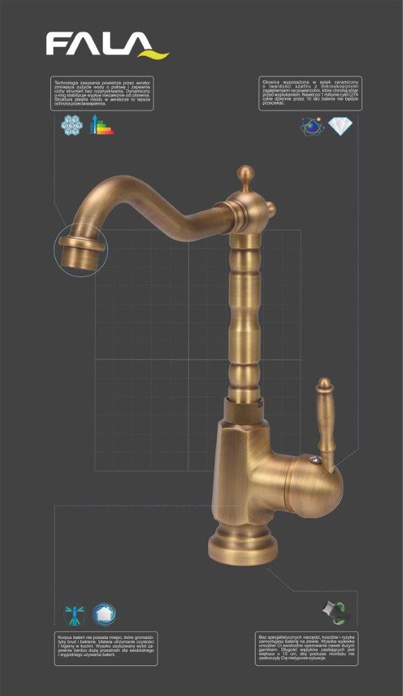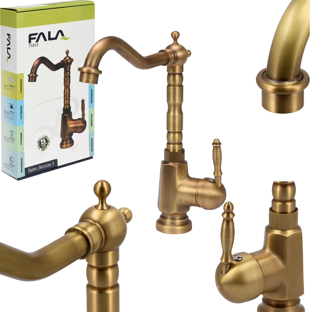 BATERIA KUCHENNA ZLEWOZMYWAKOWA STOJĄCA RETRO BRONZE 3 ANTYCZNE ZŁOTO MOSIĄDZ FALA 75832