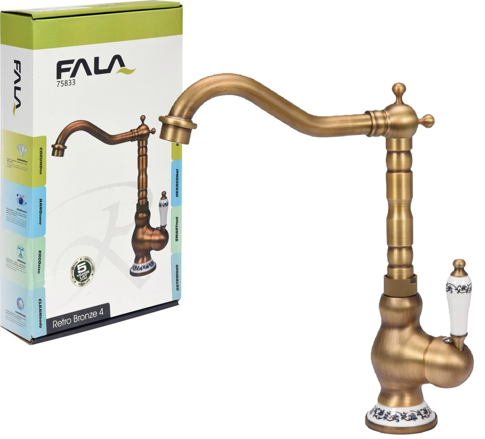 BATERIA KUCHENNA ZLEWOZMYWAKOWA STOJĄCA RETRO BRONZE 4 ANTYCZNE ZŁOTO MOSIĄDZ FALA 75833