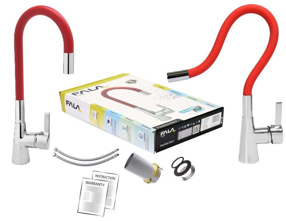 BATERIA KUCHENNA ZLEWOZMYWAKOWA ELASTYCZNA WYLEWKA FLEXIBLE CZERWONA FALA 75707