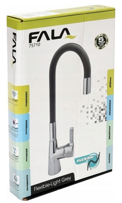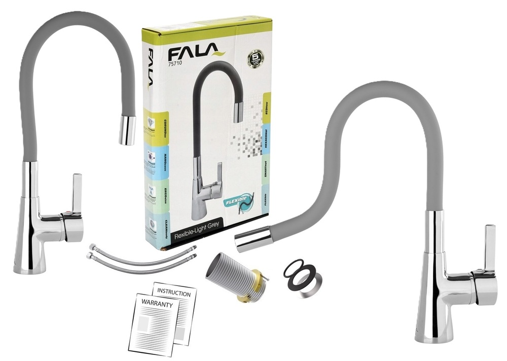 BATERIA KUCHENNA ZLEWOZMYWAKOWA ELASTYCZNA WYLEWKA FLEXIBLE JASNO SZARA FALA 75710