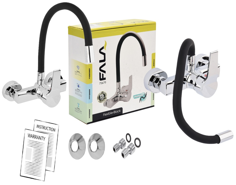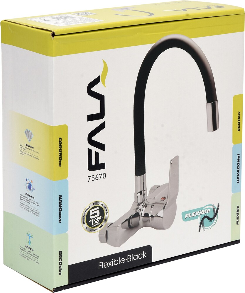 BATERIA KUCHENNA ZLEWOZMYWAKOWA ŚCIENNA ELASTYCZNA WYLEWKA FLEXIBLE CZARNA FALA 75670