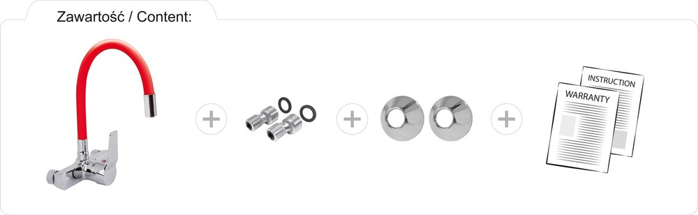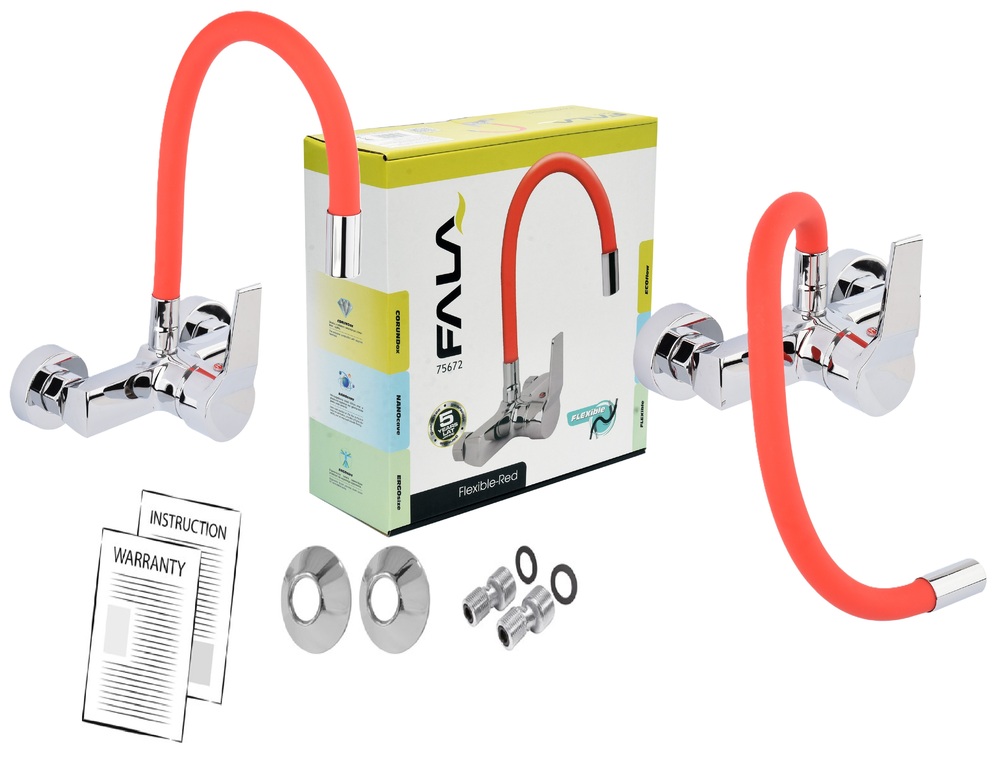 BATERIA KUCHENNA ZLEWOZMYWAKOWA ŚCIENNA ELASTYCZNA WYLEWKA FLEXIBLE CZERWONA FALA 75672