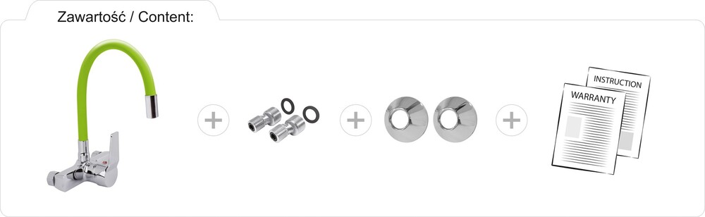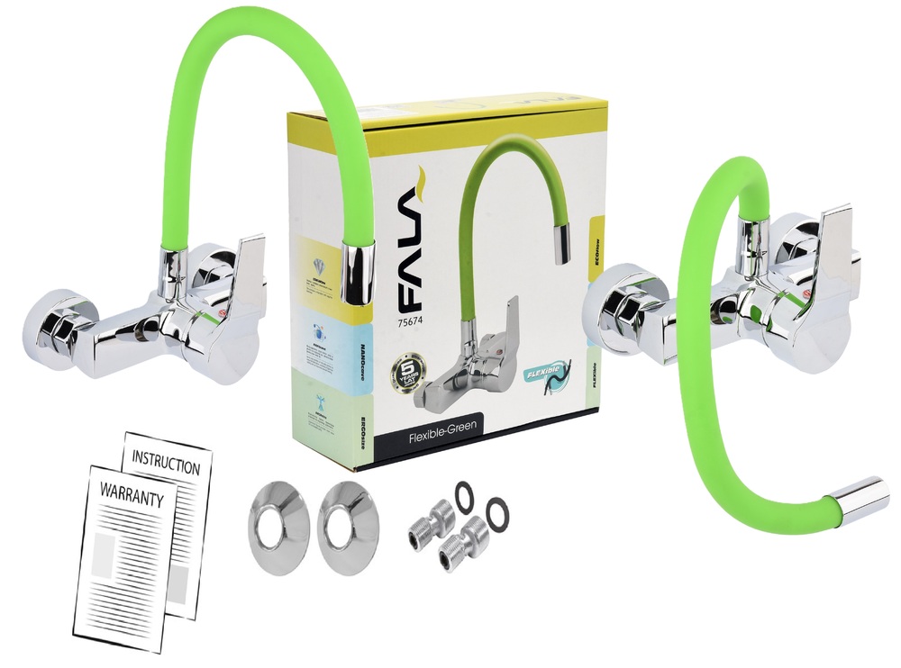 BATERIA KUCHENNA ZLEWOZMYWAKOWA ŚCIENNA ELASTYCZNA WYLEWKA FLEXIBLE ZIELONA FALA 75674