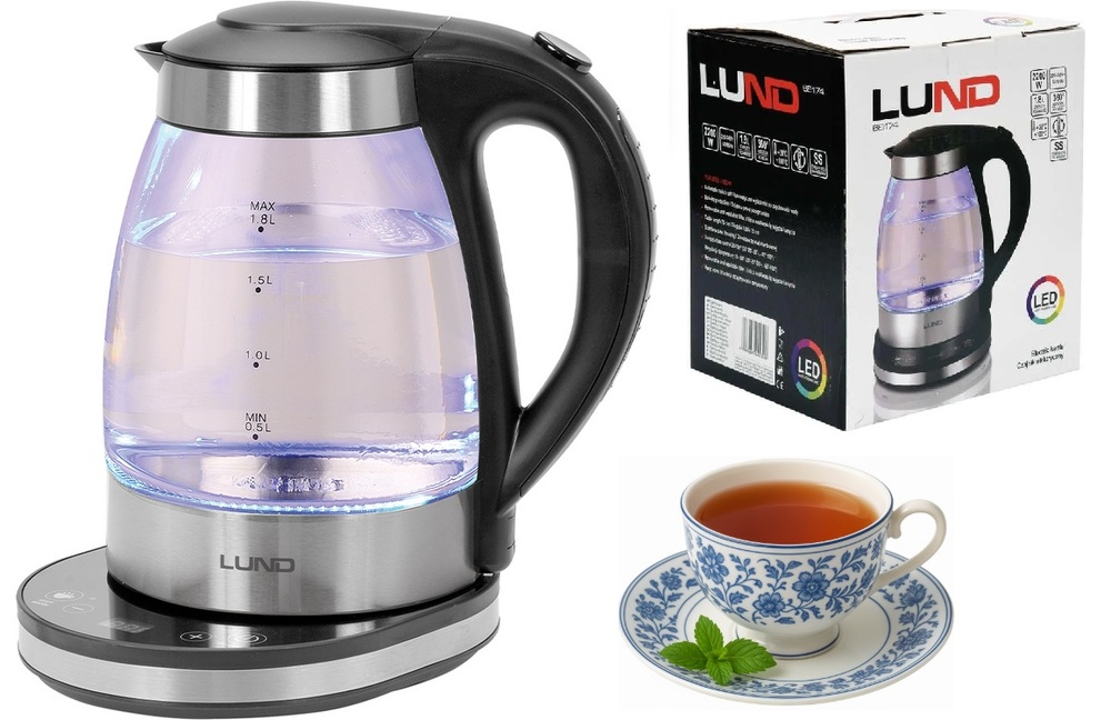 ➡️ CZAJNIK ELEKTRYCZNY SZKLANY LED 1,8L Z REGULACJĄ TEMPERATURY LUND 68174