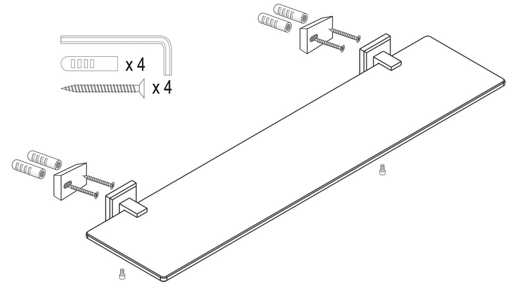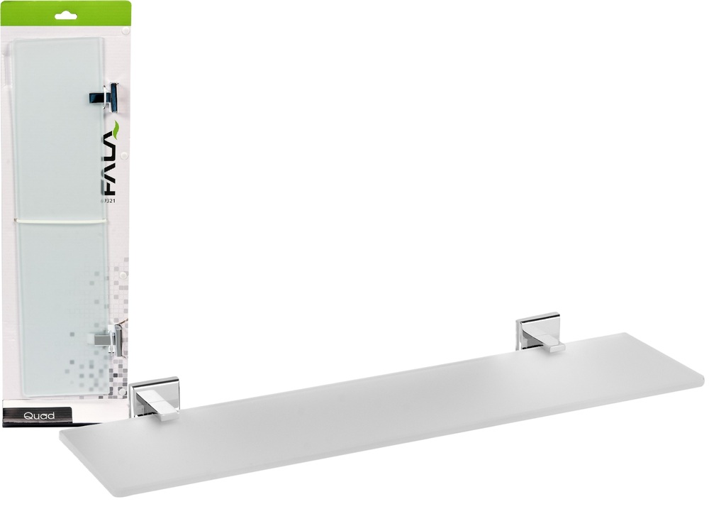 PÓŁKA ŁAZIENKOWA SZKLANA ŚCIENNA WISZĄCA SZKŁO QUAD CHROM 50cm FALA 69321