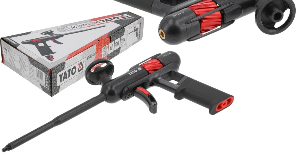 PISTOLET ALUMINIOWY DO NAKŁADANIA I NATRYSKIWANIA PIANKI MONTAŻOWEJ PU POWLEKANY PTFE SZYBKA REGULACJA 340mm YATO YT-67440