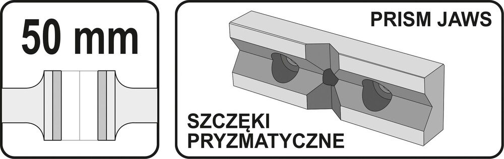 - wymienne szczęki z pryzmami, wykonane z utwardzanej stali, umożliwiają mocowanie rurek, prętów, okrągłych elementów