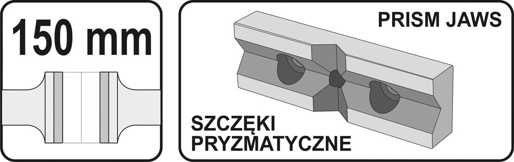 - wymienne szczęki z pryzmami, wykonane z utwardzanej stali, umożliwiają mocowanie rurek, prętów, okrągłych elementów