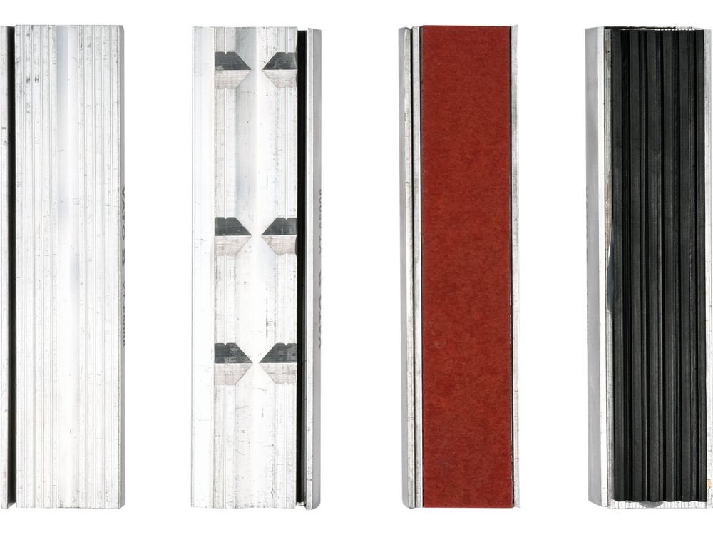 Zestaw wymiennych szczęk / nakładek do imadła l-125mm. Używając odpowiednich, miękkich nakładek chronimy zaciskany materiał przed uszkodzeniem.