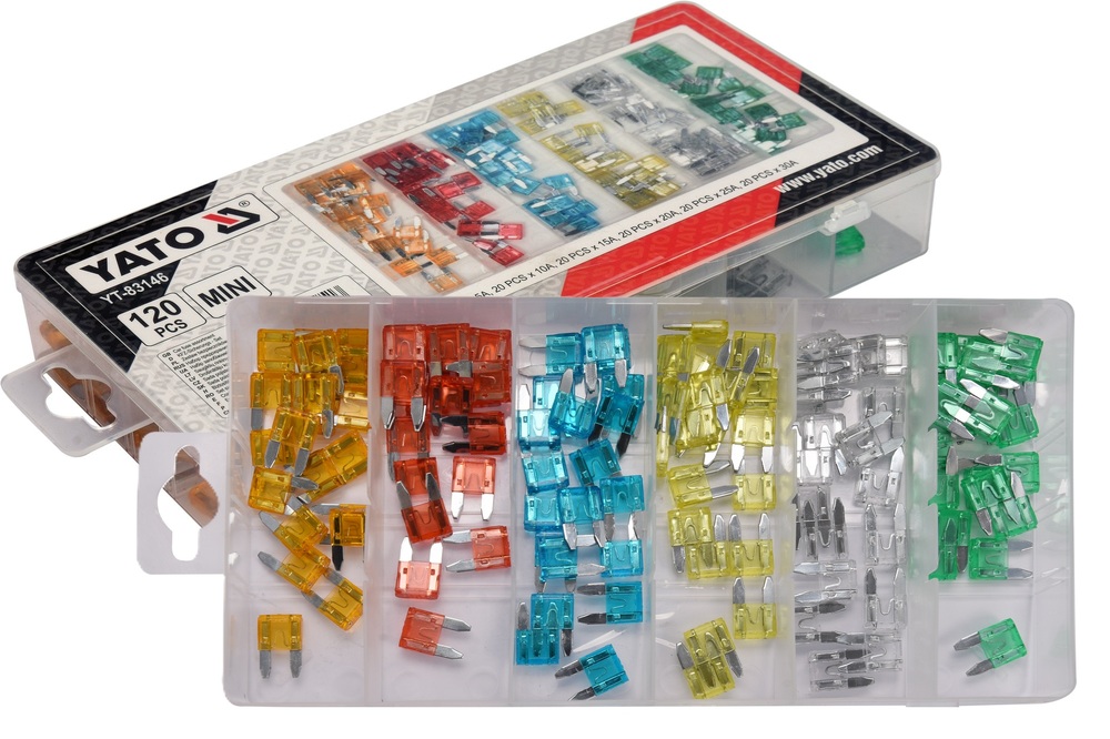 ZESTAW BEZPIECZNIKÓW PŁYTKOWYCH MINI BEZPIECZNIKI 120szt. YATO YT-83146