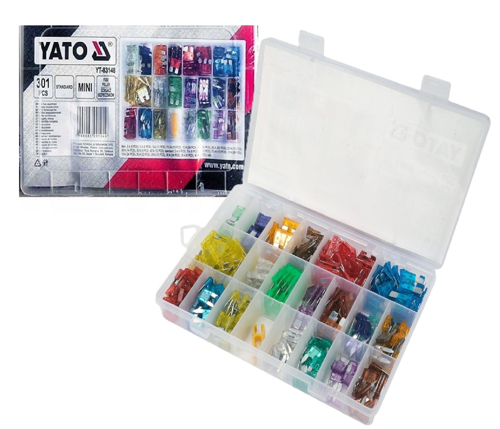 ZESTAW BEZPIECZNIKÓW PŁYTKOWYCH MINI/STANDARD BEZPIECZNIKI 301szt. YATO YT-83148