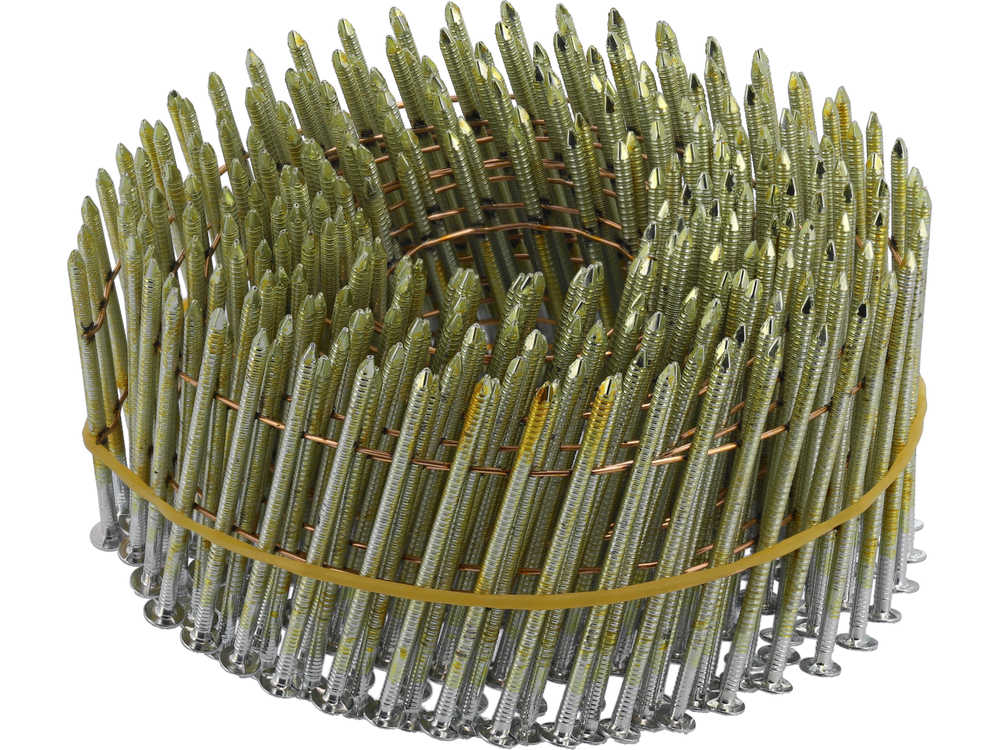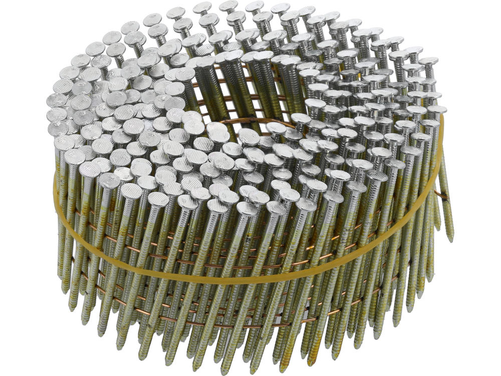 Gwoździe bębnowe ocynkowane łączone drutem pod kątem 15° - 16°. Najczęściej wykorzystywane w dekarstwie przy łączeniu elementów drewnianych, szczególnie tam gdzie gwóźdź może być narażony na warunki pogodowe. Ocynk zmniejsza ryzyko rdzewienia. Gwoździe bębnowe znajdują swoje zastosowanie z udziałem gwoździarki bębnowej.