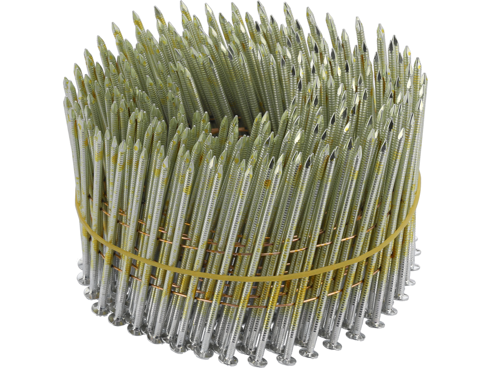 Gwoździe bębnowe ocynkowane łączone drutem pod kątem 15° - 16°. Najczęściej wykorzystywane w dekarstwie przy łączeniu elementów drewnianych, szczególnie tam gdzie gwóźdź może być narażony na warunki pogodowe. Ocynk zmniejsza ryzyko rdzewienia. Gwoździe bębnowe znajdują swoje zastosowanie z udziałem gwoździarki bębnowej.