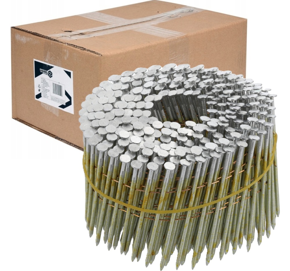 GWOŹDZIE BĘBNOWE DO GWOŹDZIARKI BĘBNOWEJ PIERŚCIENIOWE OCYNKOWANE KOLETOWANE 70mm śr. 2,5mm 3600szt. VOREL 72019