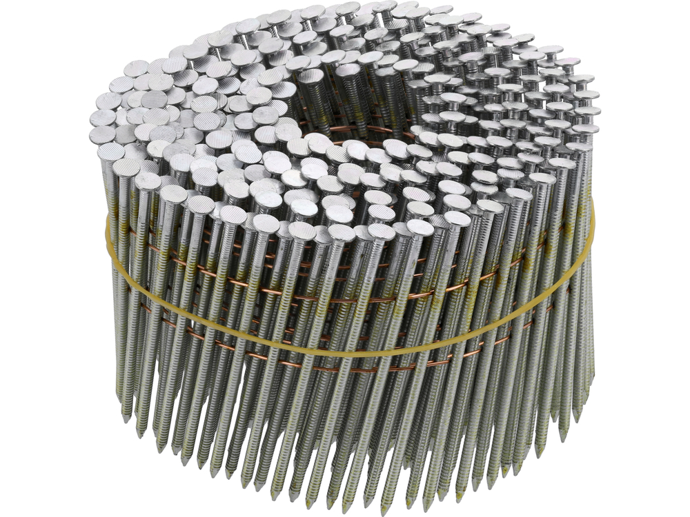 Gwoździe bębnowe ocynkowane łączone drutem pod kątem 15° - 16°. Najczęściej wykorzystywane w dekarstwie przy łączeniu elementów drewnianych, szczególnie tam gdzie gwóźdź może być narażony na warunki pogodowe. Ocynk zmniejsza ryzyko rdzewienia. Gwoździe bębnowe znajdują swoje zastosowanie z udziałem gwoździarki bębnowej.