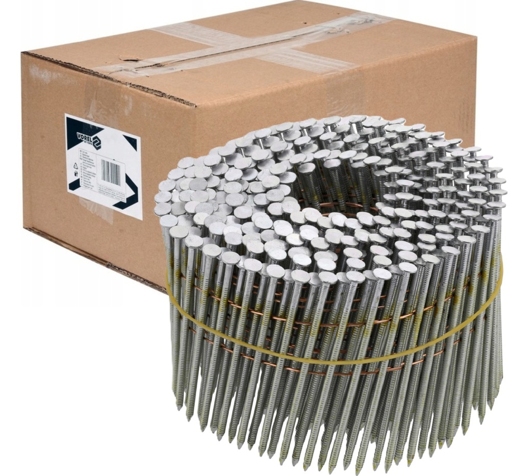 GWOŹDZIE BĘBNOWE DO GWOŹDZIARKI BĘBNOWEJ PIERŚCIENIOWE OCYNKOWANE KOLETOWANE 75mm śr. 2,5mm 3600szt. VOREL 72020